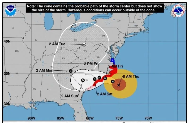 De acuerdo con CNN, para la tarde del jueves se esperan vientos que superen los 119 en las costas de las Carolinas: el inicio de varios días de desastres.
