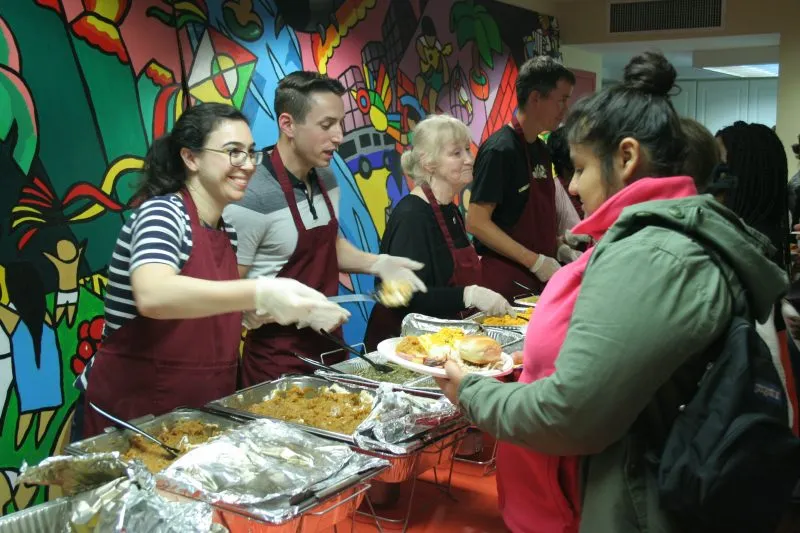 Fue un día de fiesta: niños revoloteando por doquier, jóvenes jugando futbolín, adultos fundiéndose en generosos abrazos; todos embriagados con el olor del pavo horneado, el puré de papa con mantequilla, el choclo y el arroz con frijoles. La música a ritmo de salsa, reggaeton y cumbia en altos decibeles no faltó. Así fue el “día del pavo” o propiamente dicho, la cena de Acción de Gracias o Thanksgiven, en el Latin American Youth Center (LAYC).