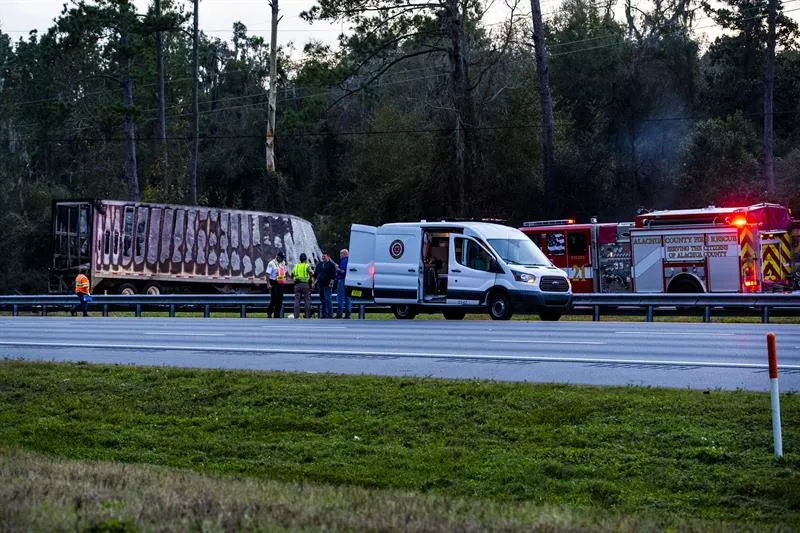 Siete personas murieron en un accidente múltiple en el norte de Florida, Estados Unidos; cinco de ellas eran niños que se dirigían a los parques temáticos de Disney.