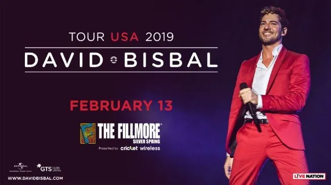 David Bisbal estará en el escenario de The Fillmore Silver Spring (8656 Colesville Road, Silver Spring, Maryland 20910), el miércoles 13 de febrero. Las entradas tienen un costo de $45 y se pueden conseguir a través de www.tickeri.com.