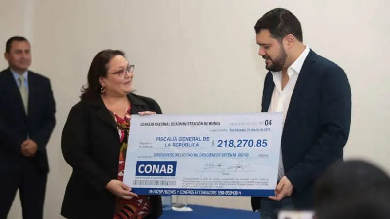 Ante la presencia del Fiscal agregado del Departamento de Justicia de los Estados Unidos, Carlos Wolsh, y las autoridades de justicia salvadoreñas, el Consejo Nacional de Administración de Bienes (Conab) distribuyó la suma de dinero que correspondió a El Salvador.