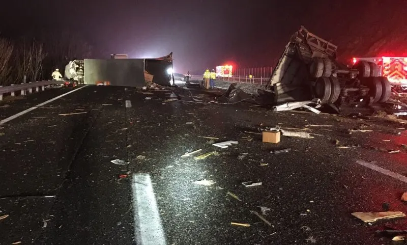 El choque, en el que participaron otros siete vehículos que no pudieron evitar los enormes escombros y las condiciones heladas de la carretera, obligó a la Policía del Estado de Virginia a cerrar la I-64 a lo largo de varias millas.