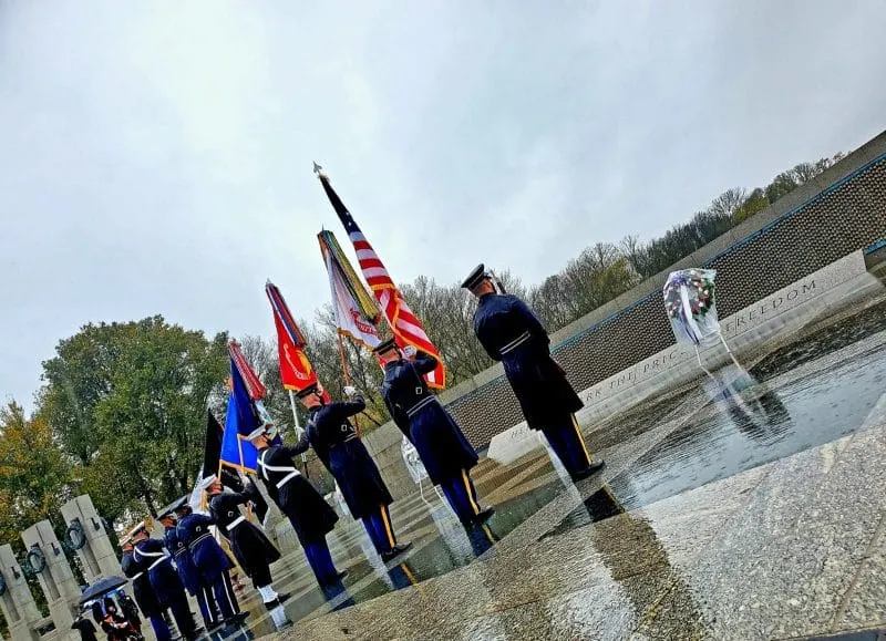 En Washington, DC, las autoridades presentaron ofrendas florales en el National World War II Memorial en horas de la mañana. Veteranos de guerra y miembros de las fuerzas armadas acudieron a la ceremonia.
