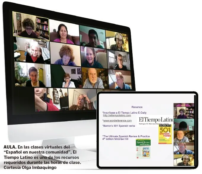 Los alumnos tienen como tarea asistir a las clases, por ahora virtuales, con la lectura digital de un artículo en español del Washington Post y otro de El Tiempo Latino. Skirble los motiva para que hablen de lo que han leído para elevar la calidad de la conversación.