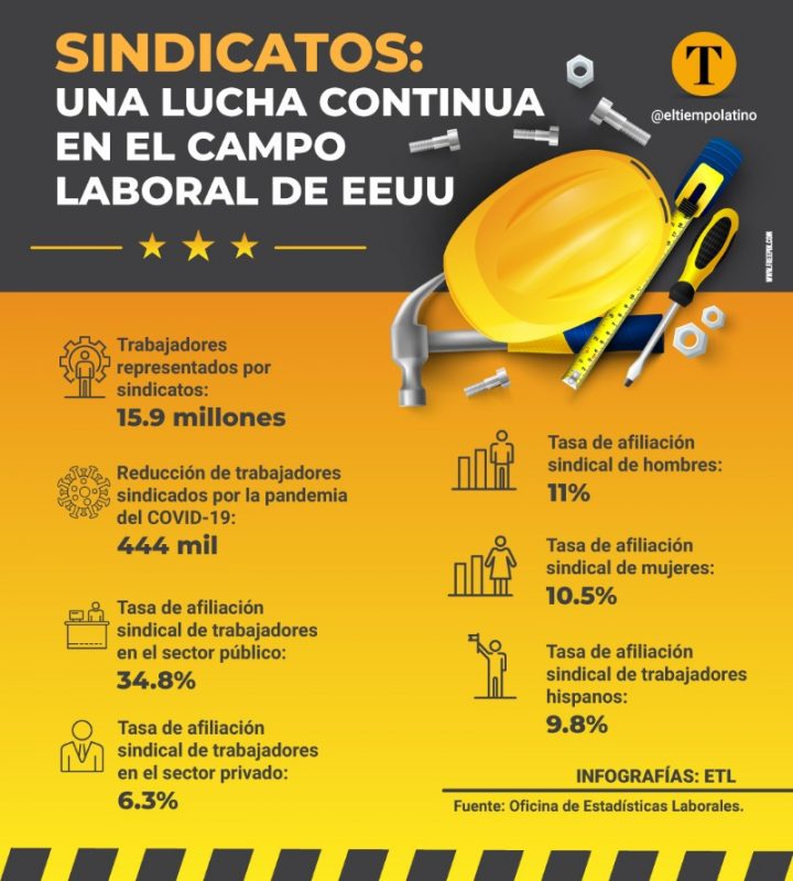 En la actualidad, sólo alrededor del 6% de los trabajadores del sector privado pertenecen a un sindicato en Estados Unidos y, de hecho, los sindicatos que sí han registrado un crecimiento en sus filas en las últimas décadas se lo deben a los trabajadores hispanos.
