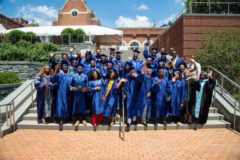 Se apiñaron en un auditorio de la universidad después de completar con éxito el Programa Pivot de Georgetown, una iniciativa de tres años que involucra la Iniciativa de Prisiones y Justicia de la universidad, la Escuela de Negocios McDonough y los gobiernos de DC y federal.