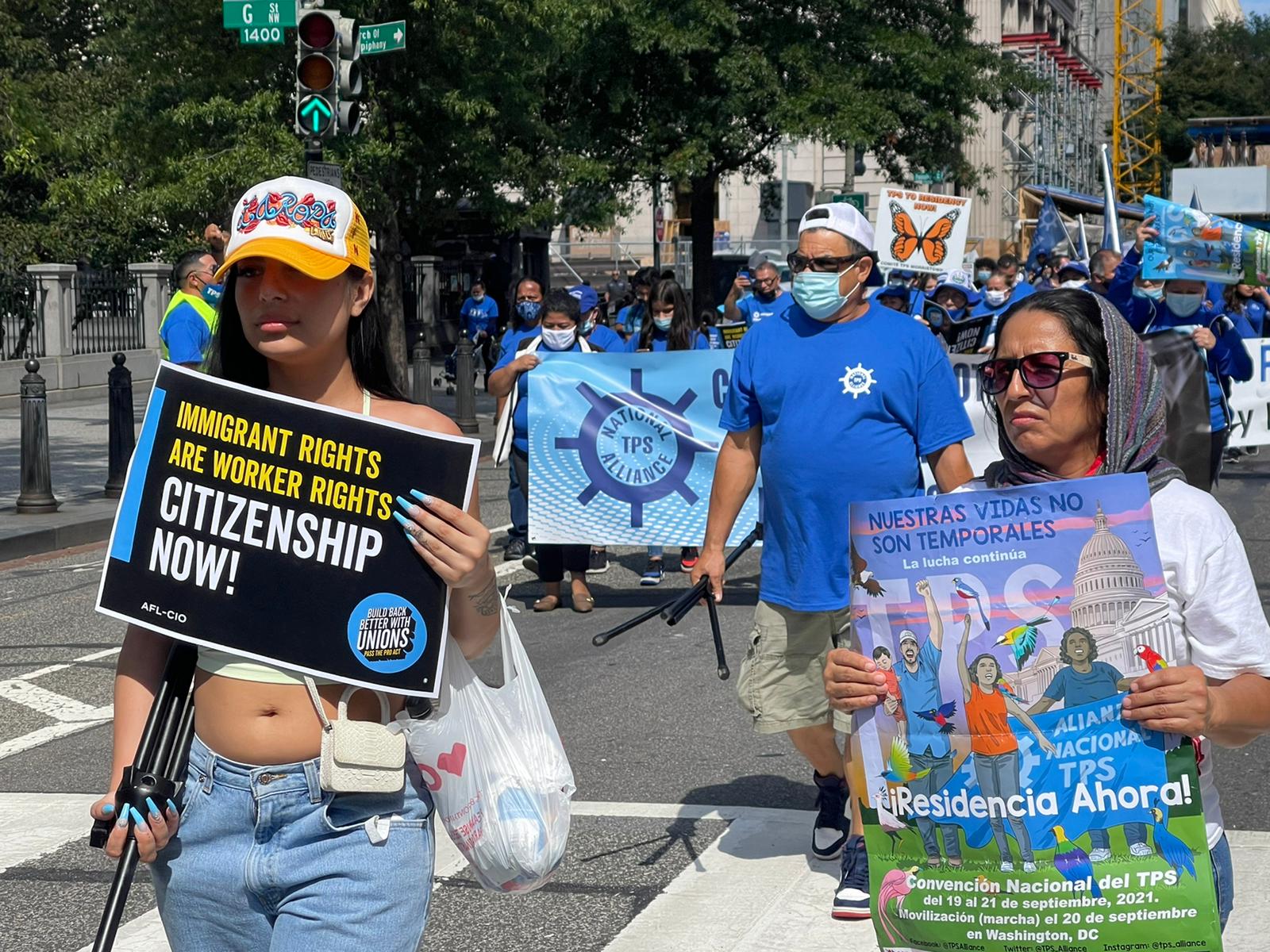 Cientos de miembros de la Alianza Nacional de TPS marchan este lunes hacia la Casa Blanca y al Congreso, para exhortar a la administración del presidente Joe Biden y a los congresistas a que aprueben una reforma migratoria con el objetivo de obtener la residencia permanente.