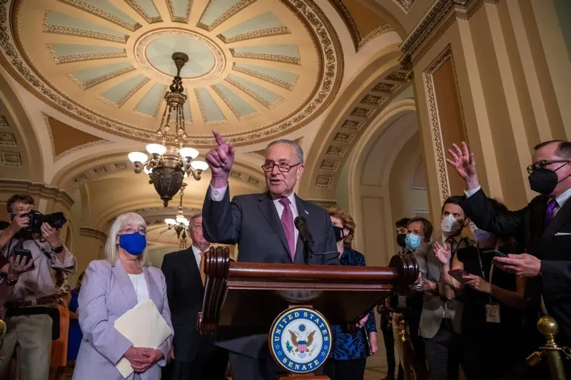 CAPITOLIO. El líder de la mayoría del Senado, Chuck Schumer, en conferencia de prensa el 28 de septiembre de 2021. | Foto: Efe.