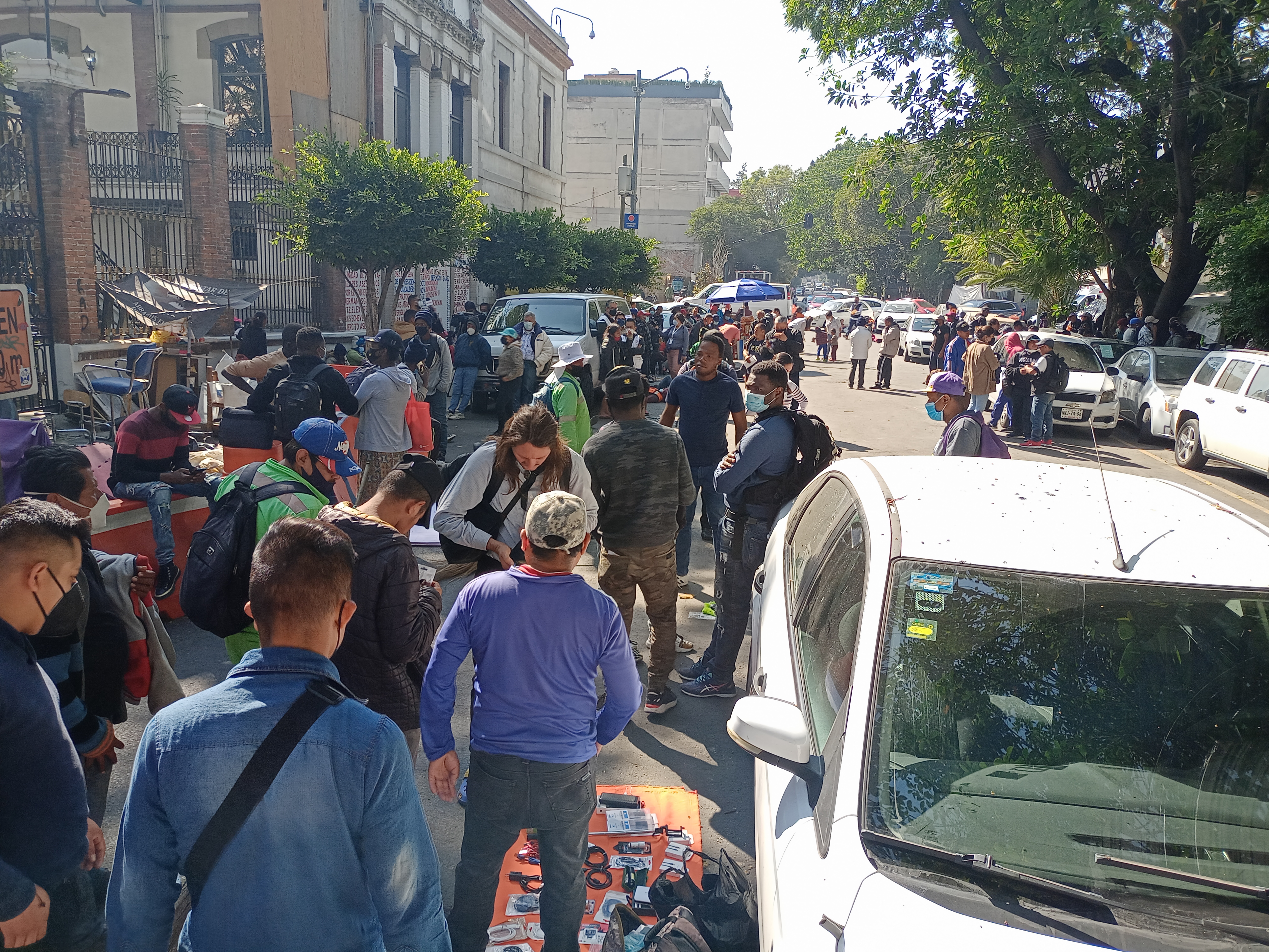 Primer sitio donde se concentran fue la Comisión Nacional de Refugiados (Comar) y luego fueron a la Secretaria de Gobernación. Foto: Andrés Segovia