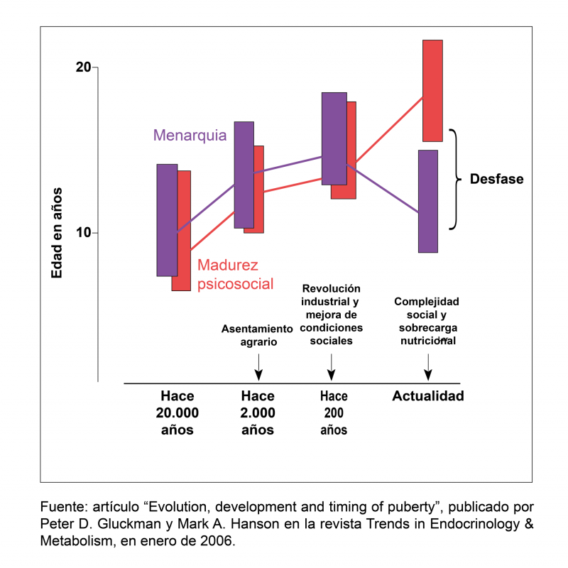 Lo que preocupa a los expertos es que esa madurez biológica no se corresponde con la madurez psicosocial, pues mientras la primera implica que las competencias reproductivas se desarrollan a temprana edad, la madurez social o psicológica solo se alcanza hacia el final de la adolescencia. En el documento Evolution, development and timing of puberty, los investigadores Peter D. Gluckman, de la Universidad de Auckland, Nueva Zelanda, y Mark A. Hanson, de la Universidad de Southampton, en Reino Unido, destacan: “Nuestra estructura social se ha desarrollado en la expectativa de una niñez más larga, una educación y entrenamiento prolongados y una competencia reproductiva tardía. Esta discordancia emergente crea presiones fundamentales en los adolescentes contemporáneos y en cómo viven en sociedad”.