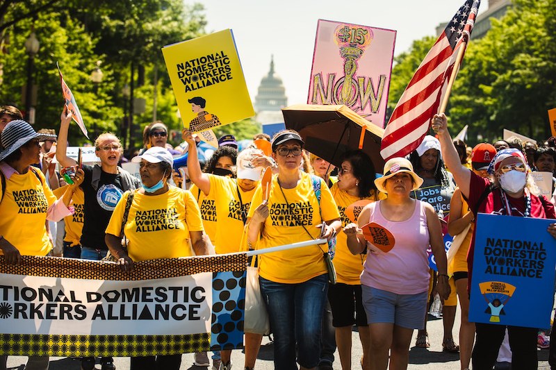 Las trabajadoras domésticas se están organizando y en otoño de 2021 realizaron la marcha Care Can’t Wait (el cuidado no puede esperar) en DC pidiendo un salario de 15 dólares la hora, seguro médico, días de enfermedad y descanso.
