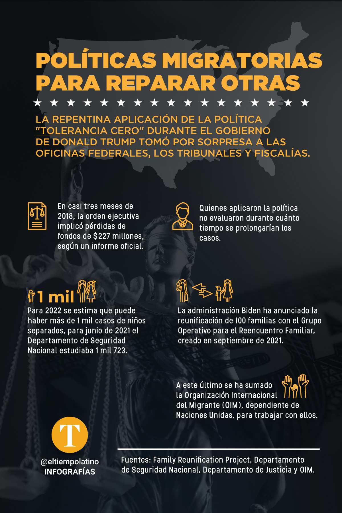Dificultades logísticas complican los reencuentros. Frank Zavala, de la Organización Internacional para las Migraciones (OIM), comentó que para enero de 2022 ellos habían intervenido en la reunificación de 64 casos de 100 que el gobierno estadounidense ha resuelto desde septiembre.
