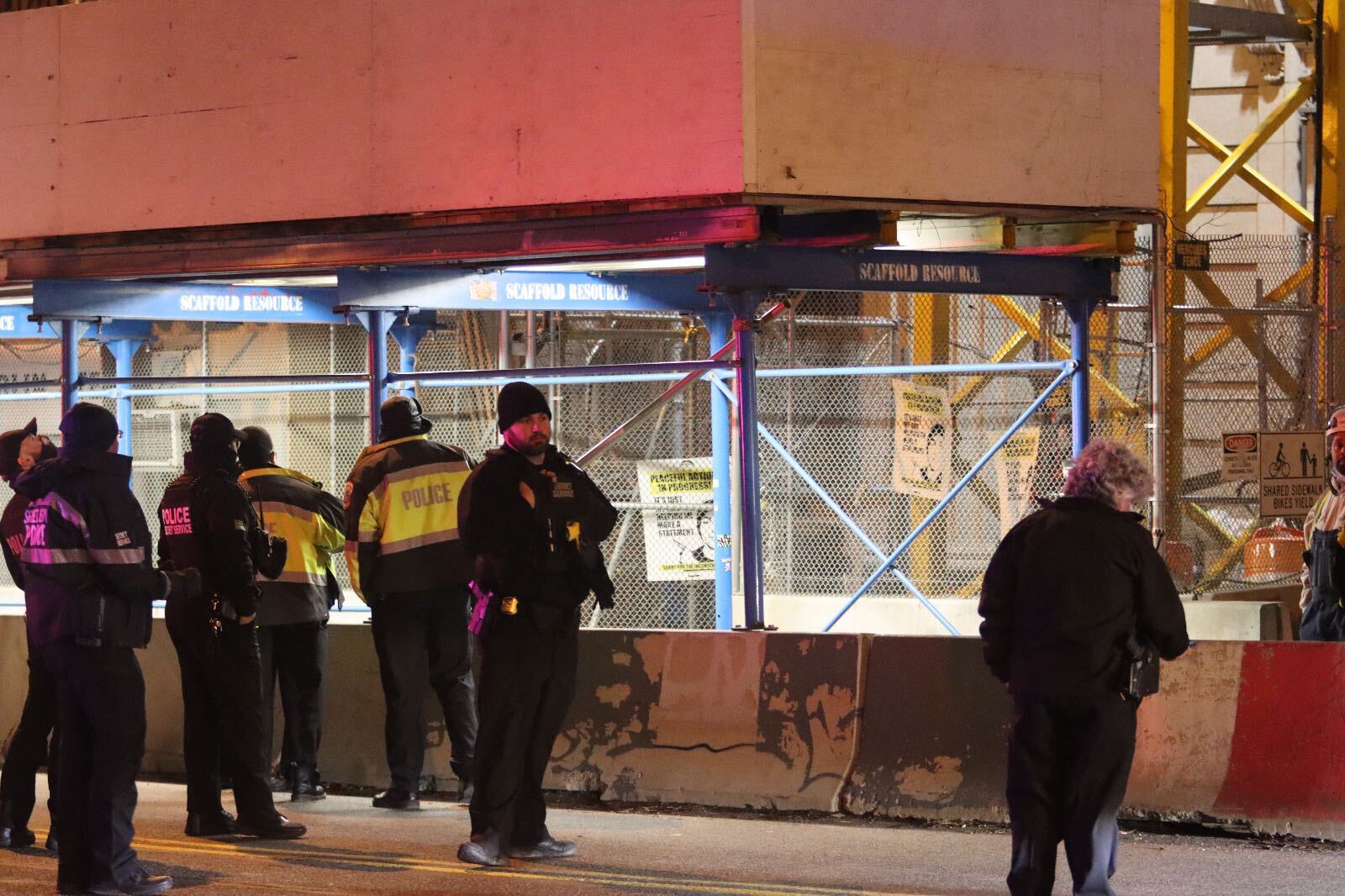 Pasadas las 9:30 am, Oliver comenzó el descenso de la grúa y quedó detenido.