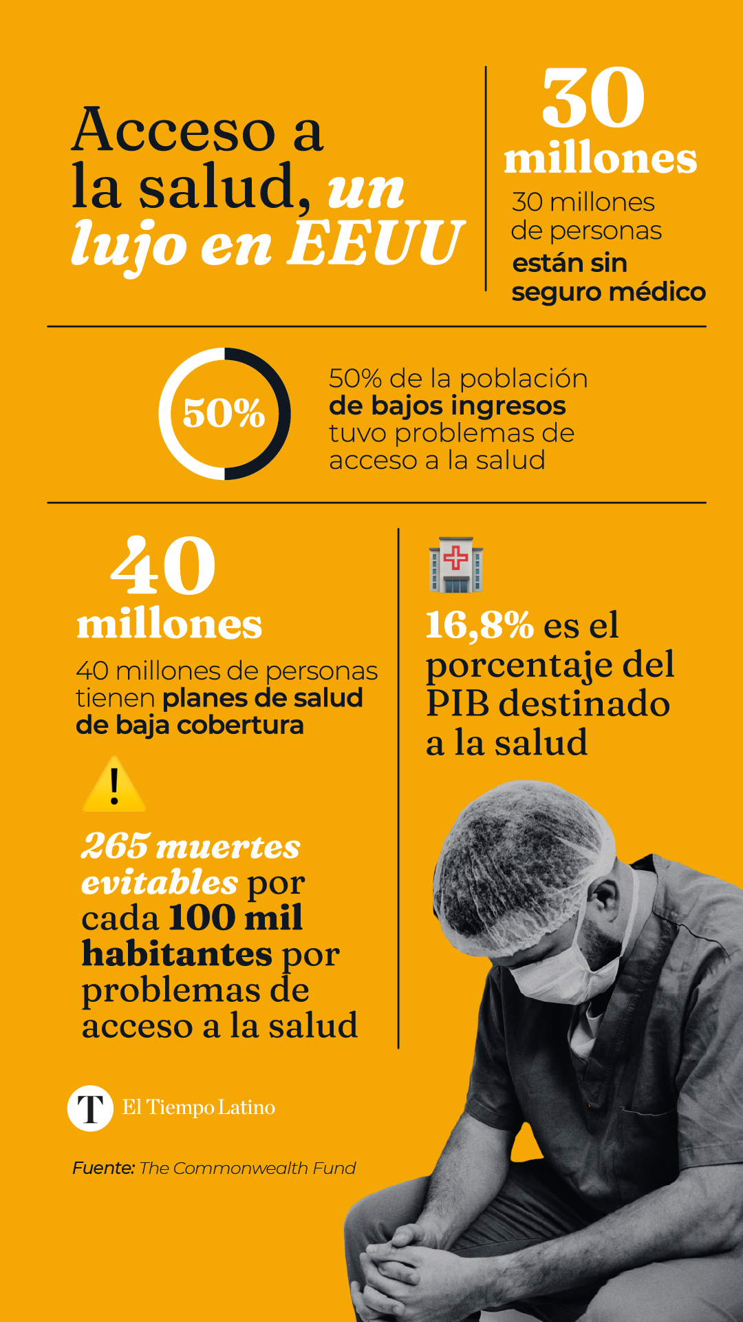 De acuerdo con el informe, Estados Unidos ocupó el último puesto en una lista de 11 países con altos ingresos referente a los servicios de atención médica y equidad. Según la fundación, al menos 30 millones de personas no cuentan con cobertura médica.