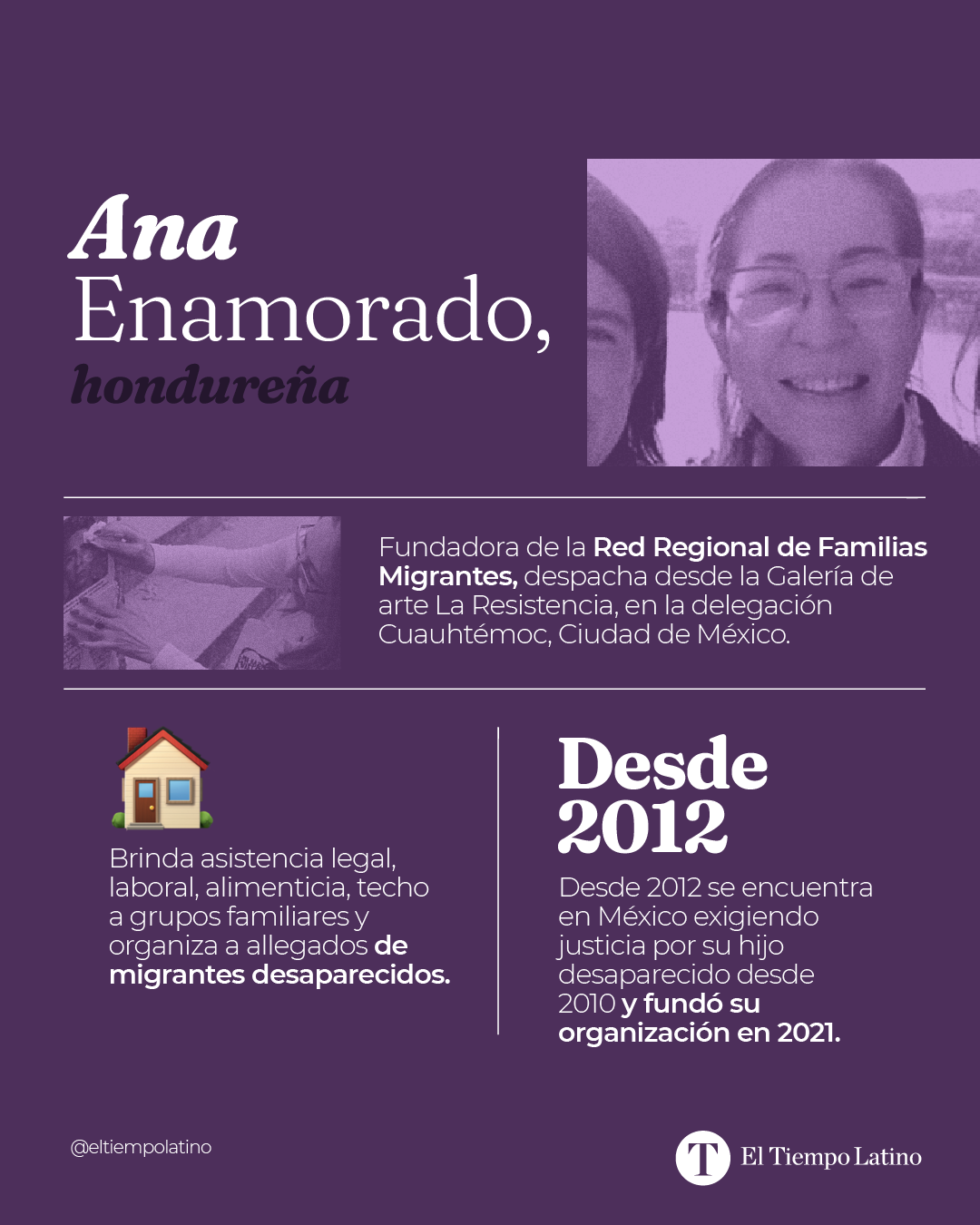 Cuidar que los derechos de los migrantes no sean violentados y hasta ayudar con algún trámite migratorio es parte de la tarea efectuada por Ana Enamorado y su organización, la Red Regional de Familias Migrantes, creada en septiembre de 2021, después de años de experiencia con otra ONG.