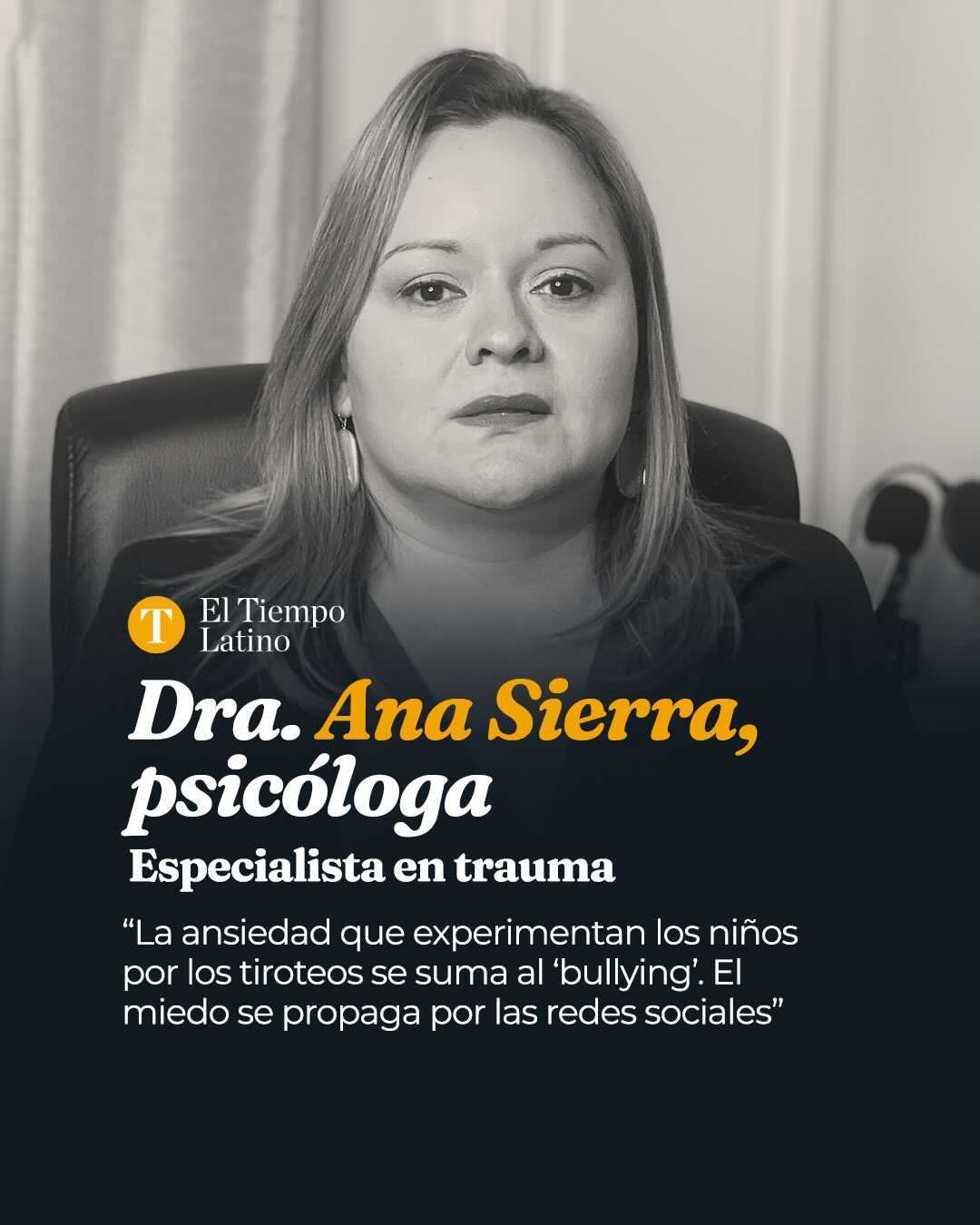 La misma semana cuando ocurrió la masacre en Uvalde, Texas, la doctora Ana Sierra recibió la llamada de una madre de Washington, DC diciéndole que su hija estaba aterrada y no quería ir a la escuela. “La niña de 16 tenía pavor. No quería ir a la escuela por temor a que ‘pudiera morir’. Tenía un cuadro de ansiedad muy alto”, contó la doctora recientemente a El Tiempo Latino.