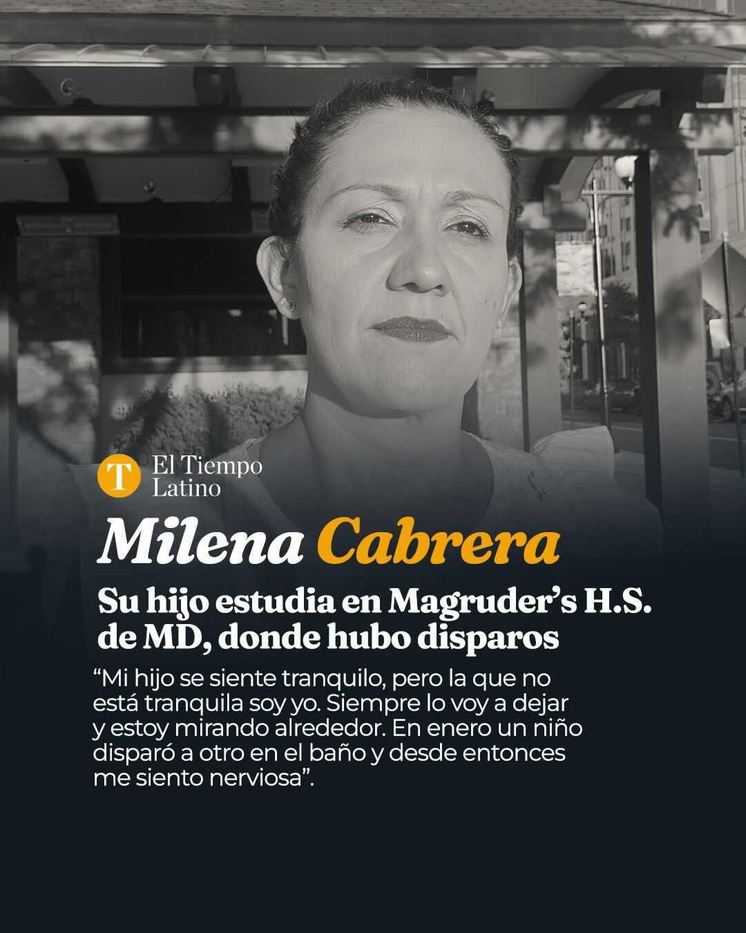 La tranquilidad de dejar a su hijo en la escuela y confiar de que todo iría bien se le acabó a Milena Cabrera en enero. Nicholas Valencia, de 17 años, es estudiante de la secundaria Magruder, en Montgomery, Maryland, en donde el 21 de enero un adolescente de 15 años baleó a otro de la misma edad en el baño de la escuela. El estudiante quedó herido.
