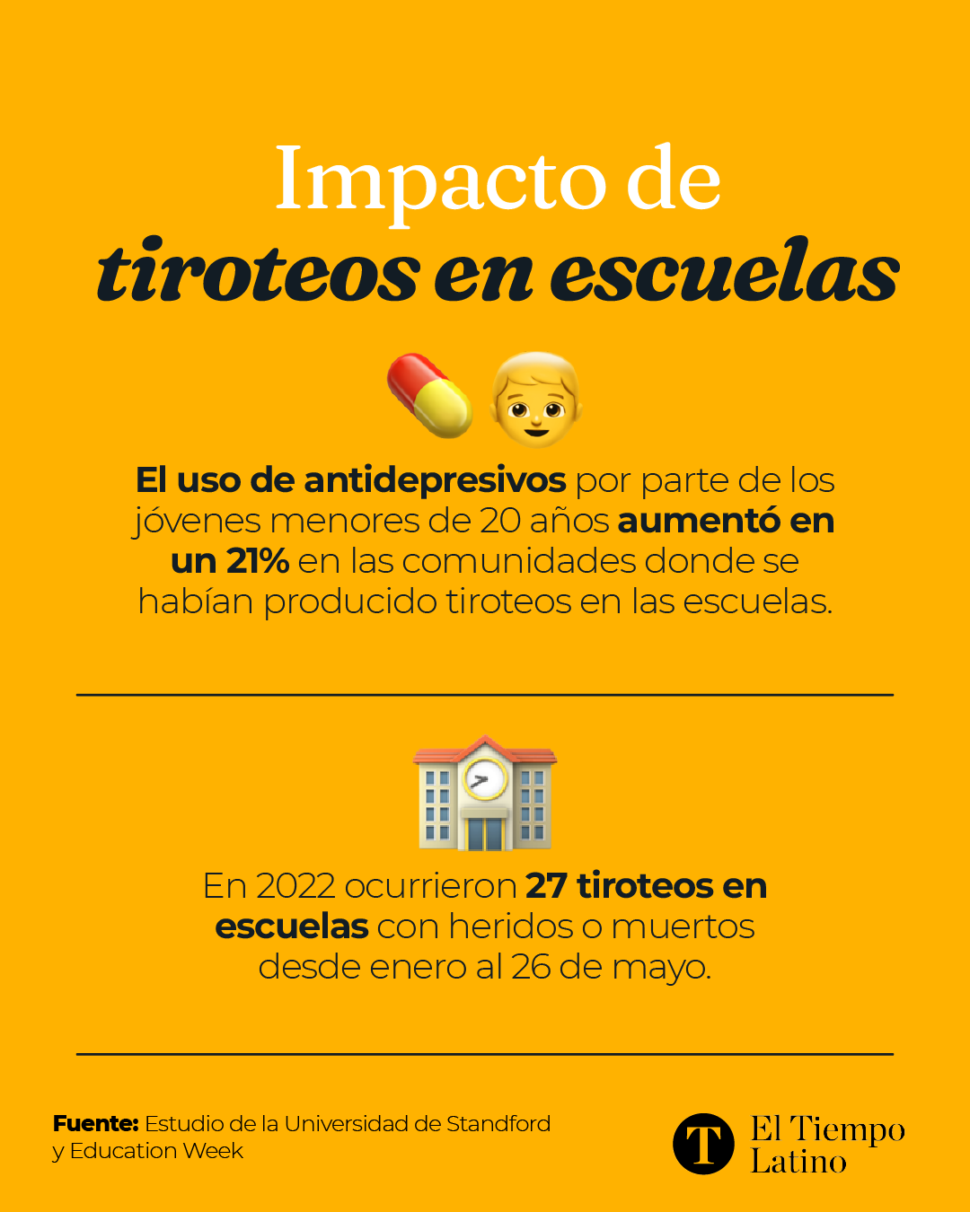 En lo que va del año, hasta el miércoles 8 de junio las autoridades en Estados Unidos han reportado 27 tiroteos en escuelas, según el portal Education Week , que comenzó a rastrear tales incidentes desde 2018.
