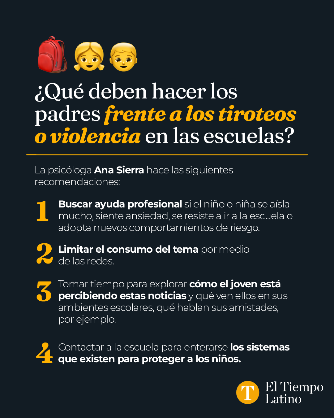 Tragedias como la de Texas aumentan los niveles de ansiedad en los niños y padres, dice la psicóloga Ana Sierra, en Washington, DC, quien tiene un doctorado en situaciones de trauma. “Hemos visto que los niños están teniendo más cuadros de ansiedad y miedo por su seguridad”, expresó la experta.