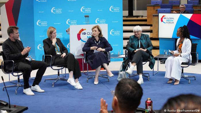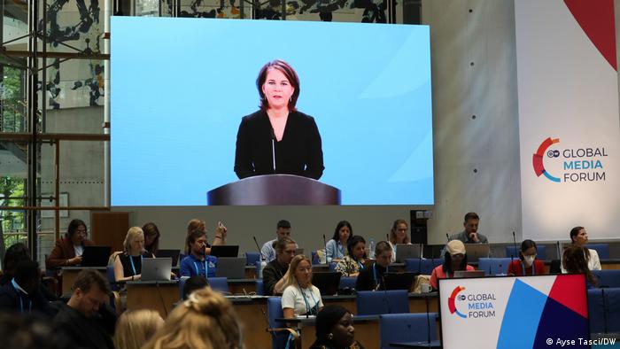 El presidente ruso, la invasión rusa a Ucrania y el ataque a los medios libres en el propio país estuvieron en el centro de muchas conferencias. La ministra alemana de Exteriores, Annalena Baerbock, envió un mensaje virtual a los cerca de 2.000 participantes del GMF, procedentes de 120 países, y explicó que Rusia no solo "libra una guerra con brutal fuerza militar, sino también con desinformación". La política del partido de Los Verdes anunció la creación de un programa mundial de protección y financiamiento para periodistas perseguidos.