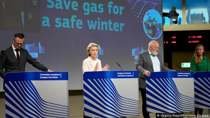 La presidenta de la Comisión Europea, Ursula von der Leyen, secundada por los comisarios de Clima, Energía e Industria, hizo un llamado a la solidaridad: "Todos los Estados miembros deben ahorrar, almacenar y compartir el gas", dijo. Son tiempos difíciles, pero será posible si los 27 Estados miembros actúan al unísono.