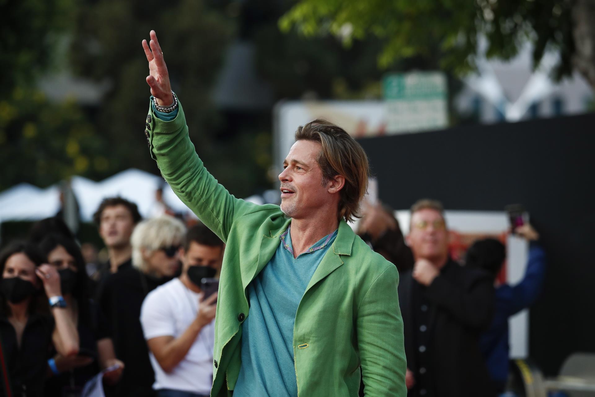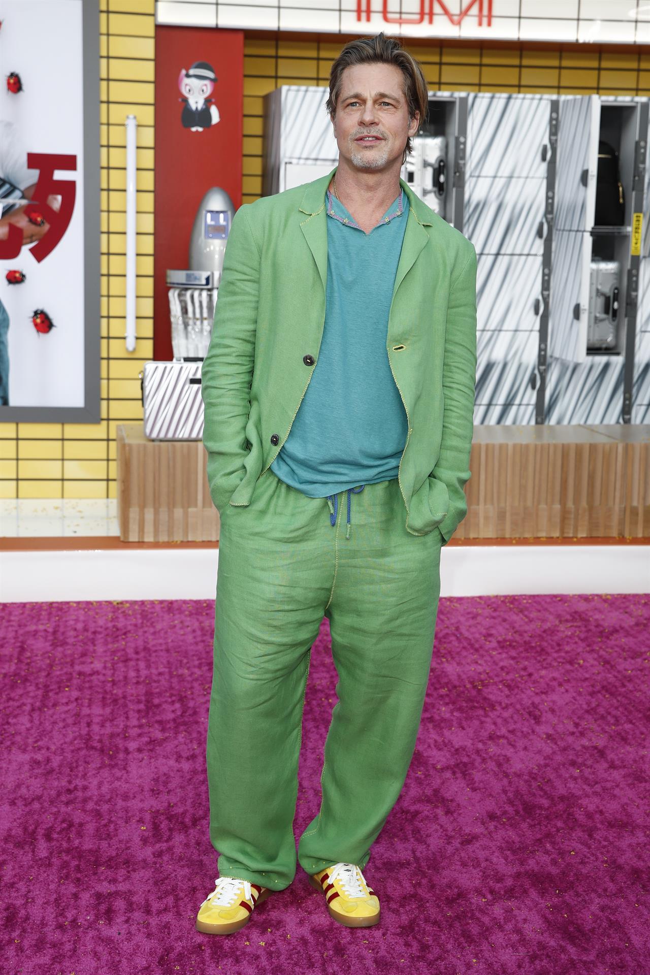 A la premiere Brad Pitt asistió con un traje oversize verde manzana, una franela verde agua y zapatos amarillos con rojos.