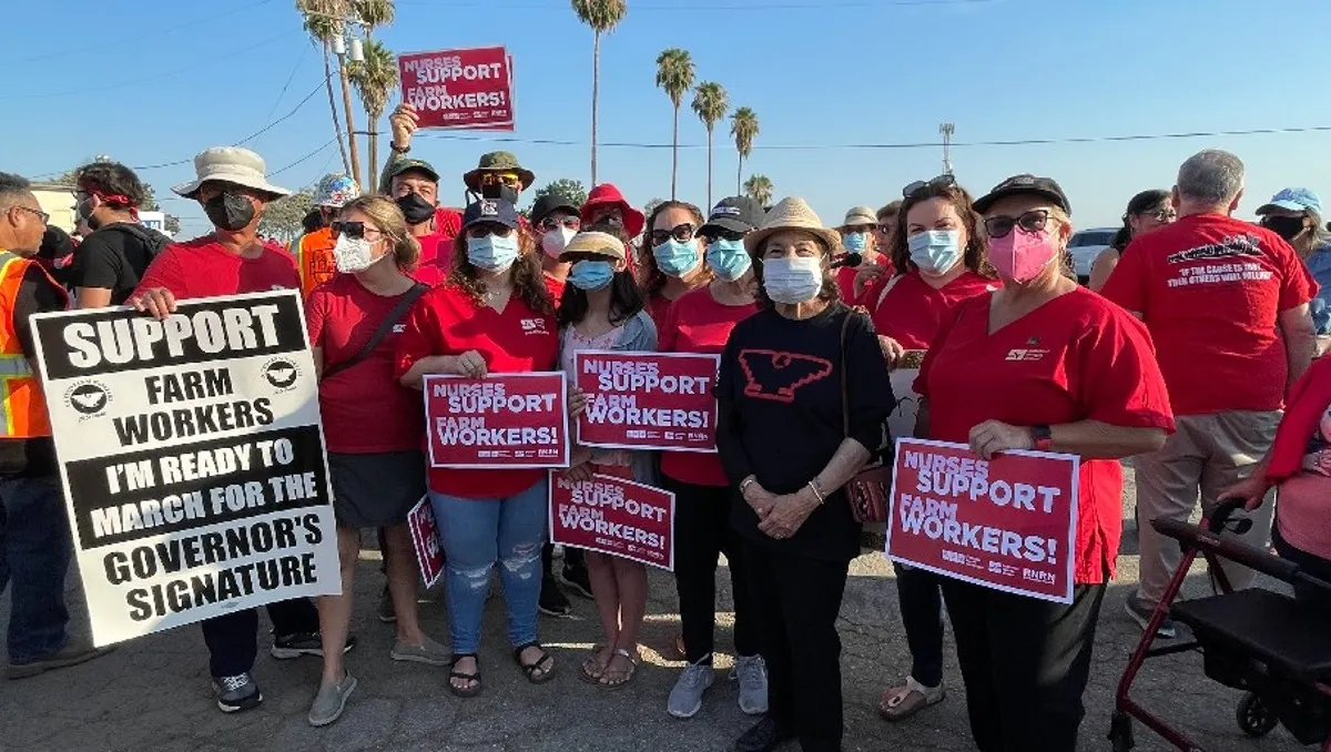 Una marcha en pleno verano. El recorrido busca convencer al gobernador Newsom de firmar la ley que proteja a los trabajadores agrícolas de todo el país de la intimidación en las elecciones sindicales.