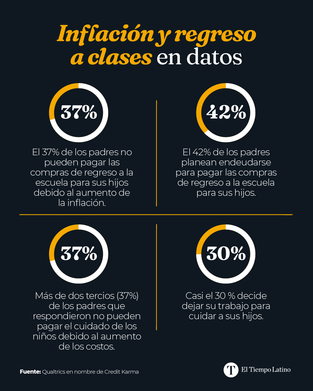 Según un reciente estudio, realizado por Qualtrics en nombre de Credit Karma, entre el 55% de los padres cuyos hijos están en edad escolar, el 37% dice que no puede pagar las compras para volver a la escuela debido al aumento de la inflación.