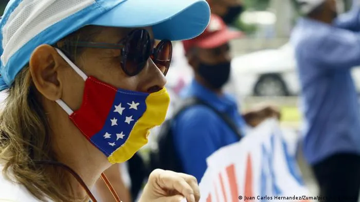 Valencia, capital del estado de Carabobo, en Venezuela. Una mujer participa en la protesta de empleados públicos que tuvo lugar el 28 de junio de 2022.