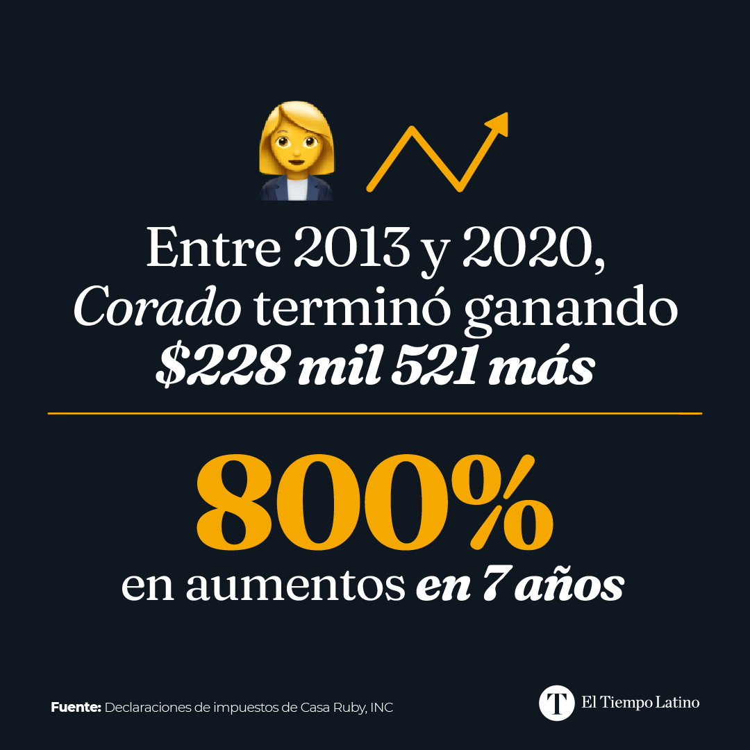 Desde 2013, cuando Corado inició como directora ejecutiva de la entidad, hasta 2020, su salario aumentó ocho veces. De iniciar ganando $31 mil 895, terminó el último año devengando $260 mil 416.