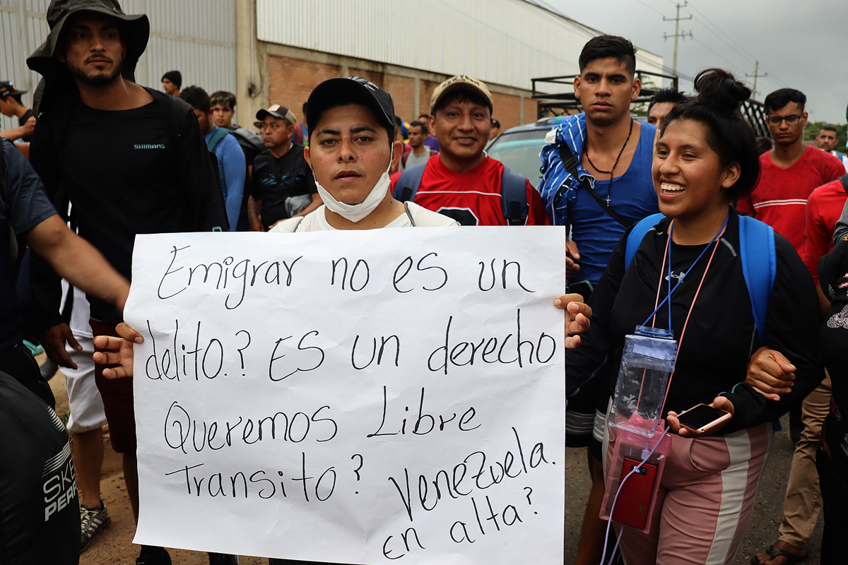 • En el grupo había personas de Bangladesh, Venezuela, Honduras, Cuba, China, Haití, Ecuador, Perú, Nicaragua y países de África. Estas llevaban dos pancartas en las que se leía "¡Queremos libre tránsito, somos emigrantes, México déjanos pasar, apóyanos, migrar no es un delito, es un derecho, queremos libre tránsito".