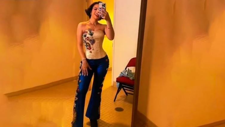 Recientemente, la cantante de regional mexicano en un video lució un hermoso corsé dorado y lo compartió en su cuenta de tiktok, en la que tiene con 6. 7 millones de visualizaciones y medio millón de likes.
