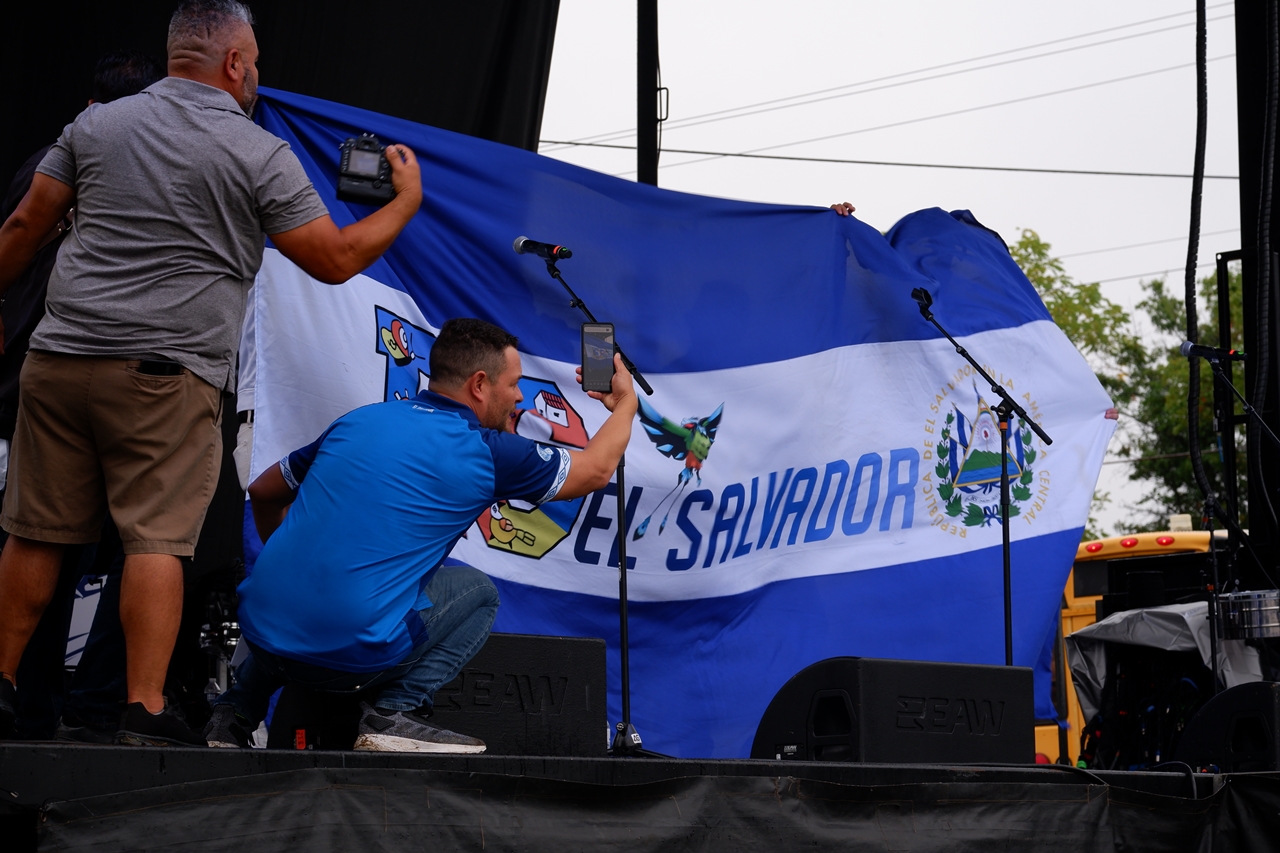 La agrupación también puso un toque nostálgico entre la comunidad, cuando se subió al escenario con una gran bandera de El Salvador, que ondearon por minutos.