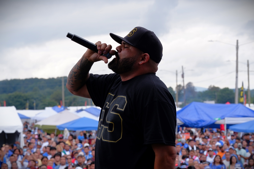 Más tarde, el rapero Mr. Pelón 503 aportó las notas de orgullo guanaco entre los que corearon y gritaron sus canciones. Además, alegró la tarde a muchos cuando desde el escenario lanzó gorras, camisetas y una chamarra que portaba al inicio de su presentación.