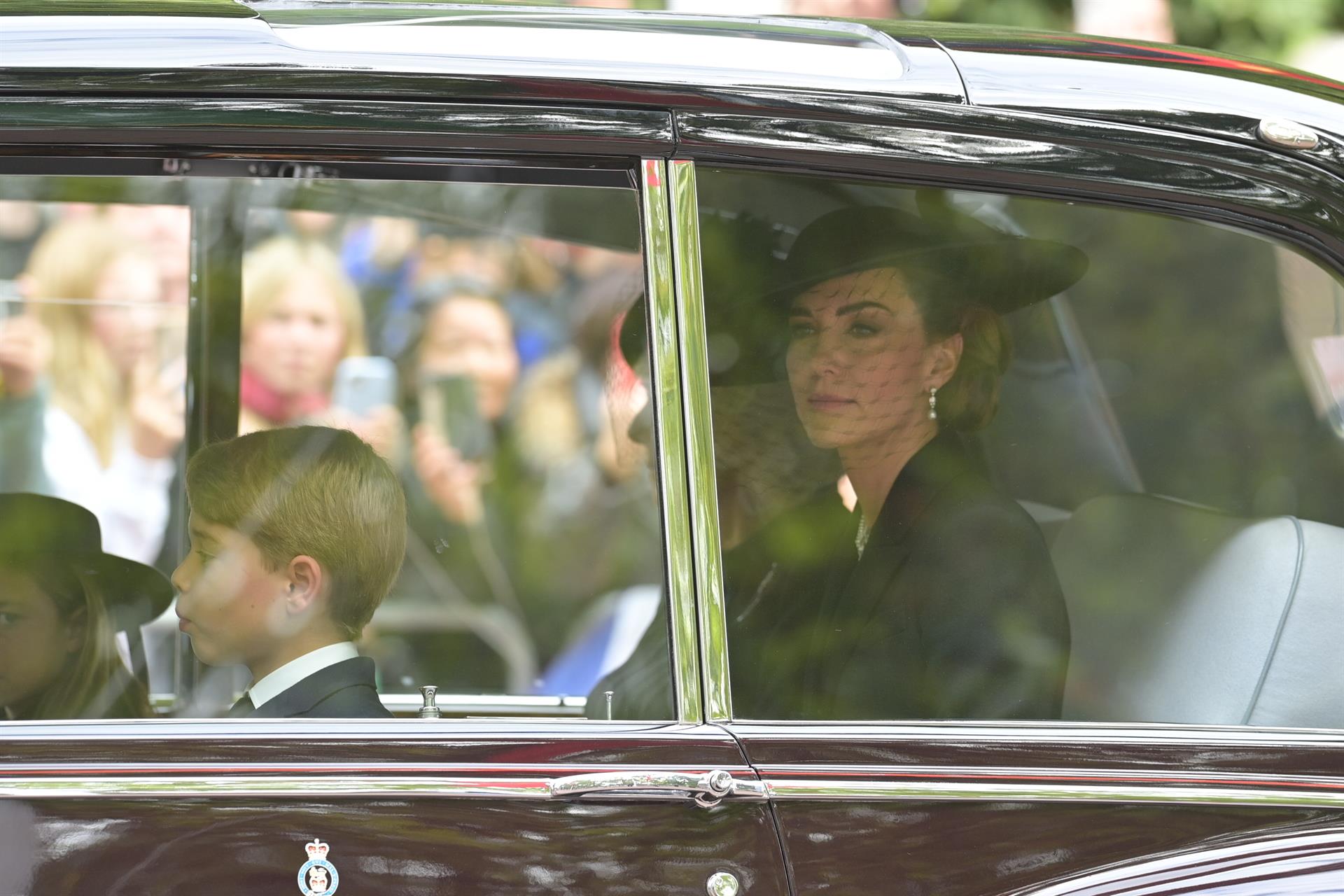 Otros miembros de la familia real, incluida la reina consorte, la duquesa de Sussex, la princesa de Gales y los hijos del príncipe William, asistieron al recorrido en autos.