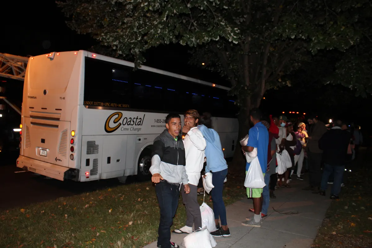 En total fueron 30 adultos y 11 niños, en su mayoría venezolanos, los que llegaron a las 6:15 am (hora local) en el autobús enviado por el gobernador republicano de Texas, Greg Abbott, al Observatorio Naval, residencia oficial de la vicepresidenta.