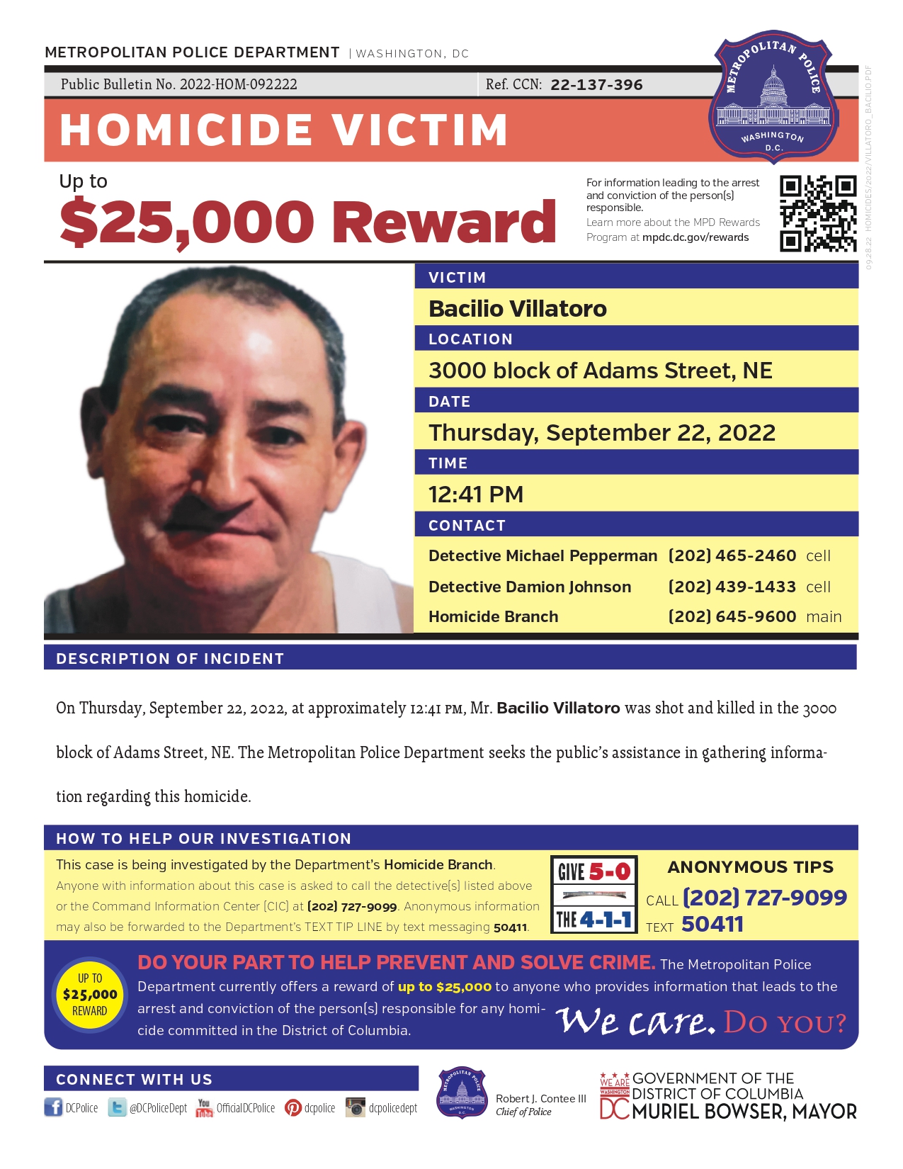 Mientras la Policía ofrece una recompensa de hasta $25 mil a la persona que ofrezca información del sujeto que habría asesinato a José Basilio Villatoro, la familia de la víctima intenta reunir $15 mil para poder repatriar el cuerpo hacia El Salvador.