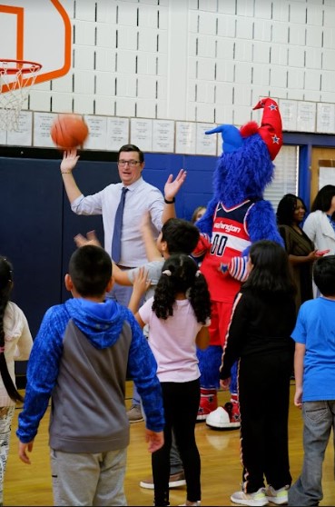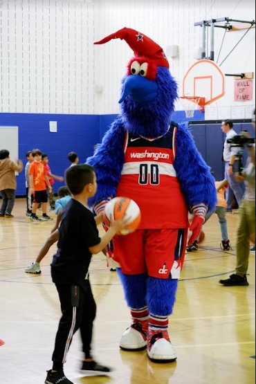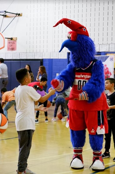 La visita fue parte de las actividades de cierre del Mes de la Herencia Hispana, que desarrolló el equipo de baloncesto de DC. Más de una docena de estudiantes disfrutaron con entrenadores, voluntarios y con G-Wiz, la mascota del equipo.