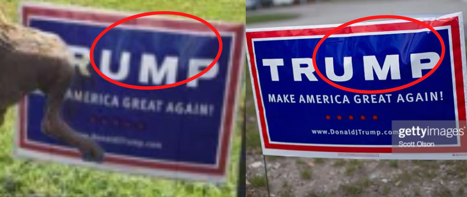 - En septiembre de 2020 se hizo viral un cartel de un perro orinando en un cartel de campaña de Trump (Partido Republicano). Era un montaje.