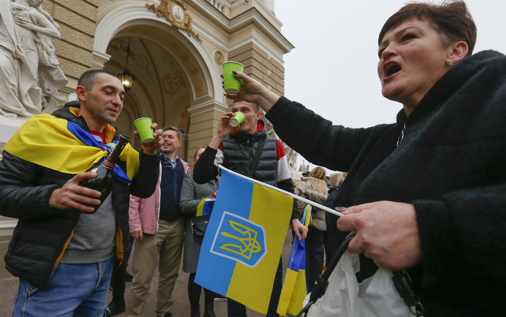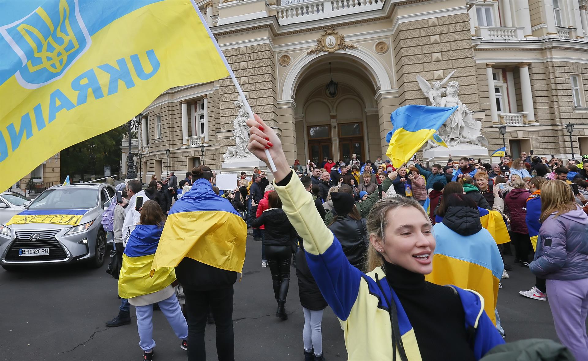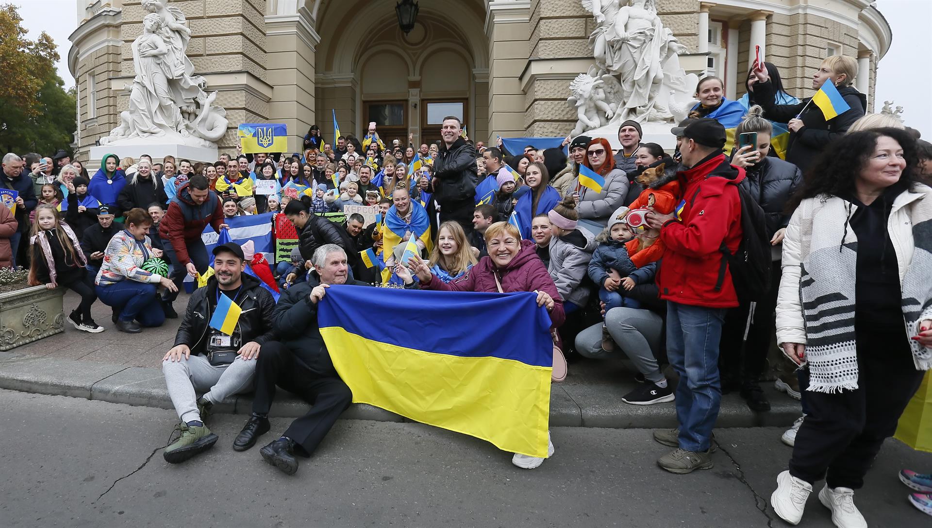 La mañana del sábado ciudadanos salieron a las calles de Kherson, ubicada al sur de Ucrania y a orillas del Mar Negro, para celebrar la retirada de las tropas rusas. Con banderas ucranianas inundaron las avenidas y abrazaron a los policías.