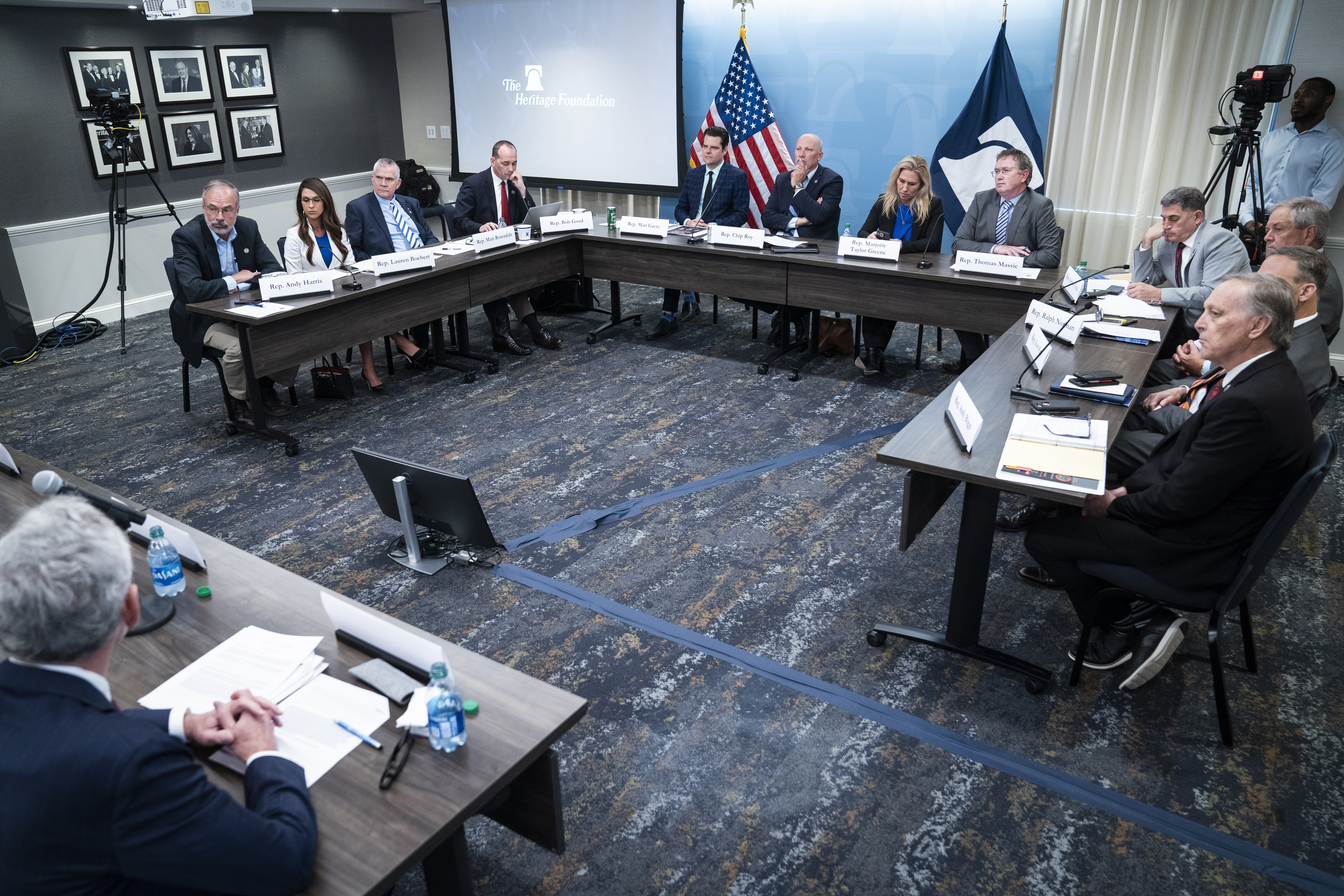 A la vuelta de la pausa de Acción de Gracias, McCarthy convocó lo que algunos miembros moderados llamaban en broma la "reunión de las cinco familias" para empezar a encontrar puntos en común dentro de la conferencia. Alrededor de 20 legisladores, desde los más centristas hasta los aliados más fuertes de Trump, permanecieron en una sala con McCarthy durante horas en lo que Jordan y la representante Marjorie Taylor Greene (R-GA) describieron como un "gran avance" y Bacon calificó como un "buen comienzo".