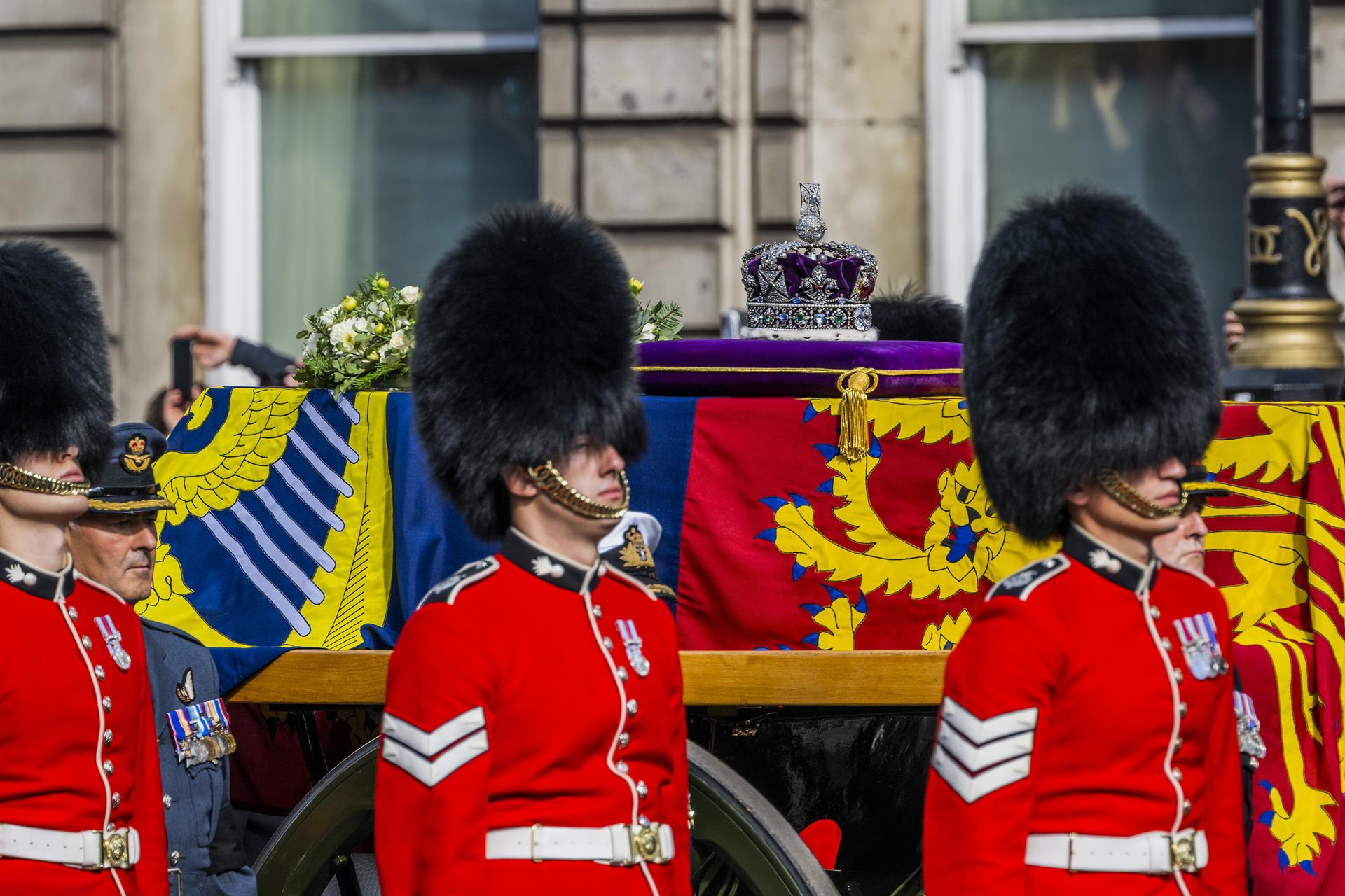 La mañana del 19 de septiembre el ataúd de Isabel II inició su primer recorrido del funeral desde la Abadía de Westminster hasta el Arco de Wellington, de Royal Park, en una procesión de 45 minutos.