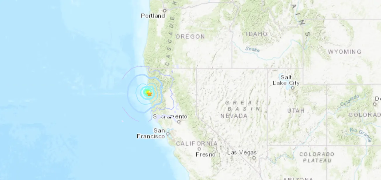 El epicentro se ubicó a unos 48 kilómetros al sur de la ciudad portuaria de Eureka, una localidad ubicada cerca de la frontera con el estado de Oregon y a 14 kilómetros al sureste de Rio Dell, ambas dentro del condado de Humboldt.