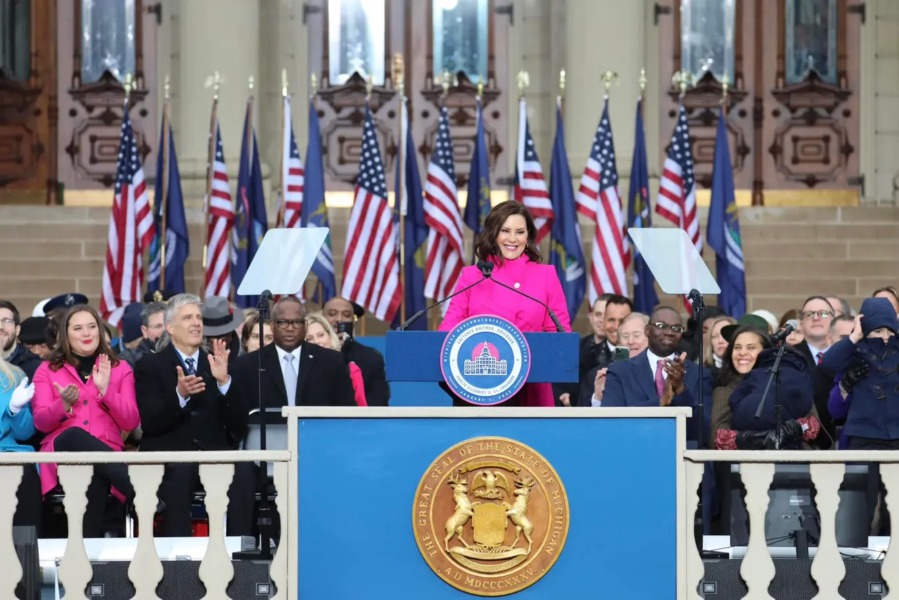 Michigan. La gobernadora reelecta Gretchen Whitmer tomó posesión de su cargo el domingo 1ero de enero, día de Año Nuevo.