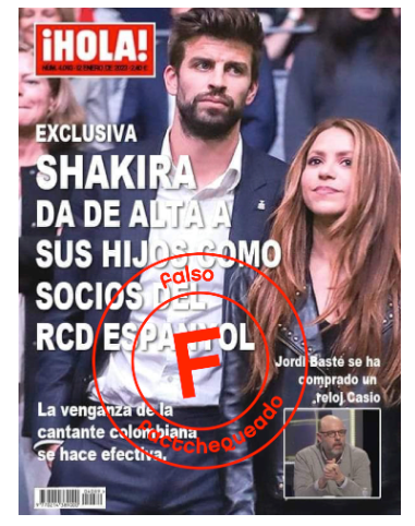 No hay rastro de esta portada en la página web oficial del medio. Además, el número de la segunda semana de enero se publicó el día 11 y en él no aparecían Shakira y Piqué, sino Tamara Falcó e Íñigo Onieva.