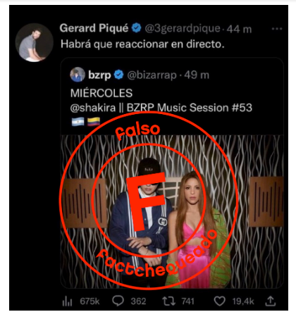 La colaboración entre la cantante colombiana Shakira y el productor argentino Bizarrap ha revolucionado las redes sociales, pero el gran éxito musical no se ha escapado de la desinformación. Te explicamos 6 técnicas desinformantes que hemos detectado en Factchequeado y que han hecho que algunas de esas falsedades circularan por todo el mundo hispanohablante durante el primer mes de 2023. Te lo contamos para que tú también aprendas a detectarlas.