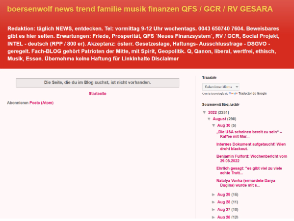 A través de una búsqueda inversa en Google de los contenidos difundidos ahora vía cadena de WhatsApp, descubrimos que el origen de estos mensajes está en un blog escrito en alemán (Boersenwolf News). Aunque, al acceder al sitio web, se indica que la página buscada “no existe”, la publicación se puede consultar en Wayback Machine. El contenido fue publicado el 14 de agosto de 2022 con el siguiente encabezado en alemán: “La sentencia del Tribunal Supremo confirma: ‘Las terapias génicas con ARNm de COVID son irreparables’. Así, los autores se enfrentan a un mínimo de 10 años de prisión”.