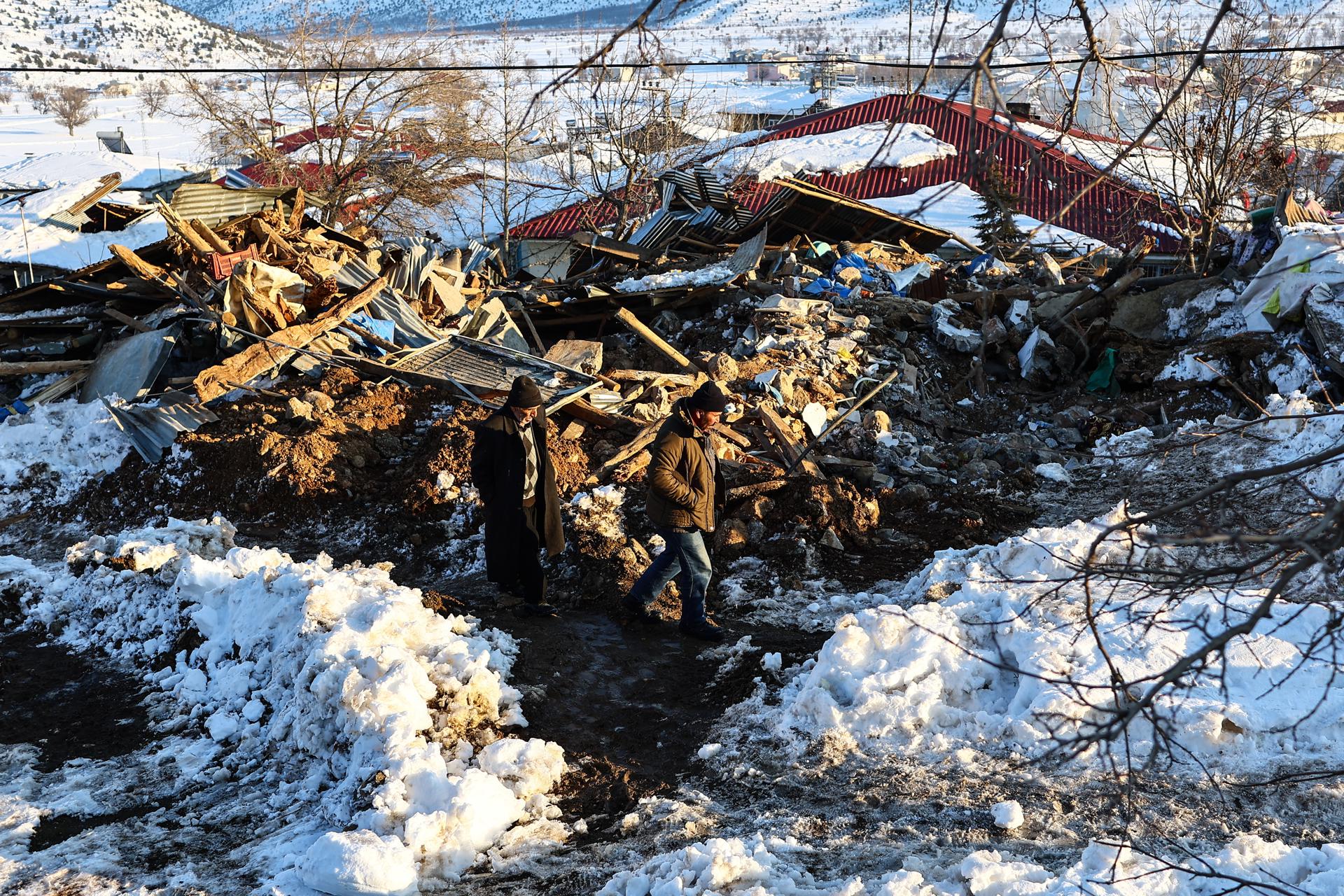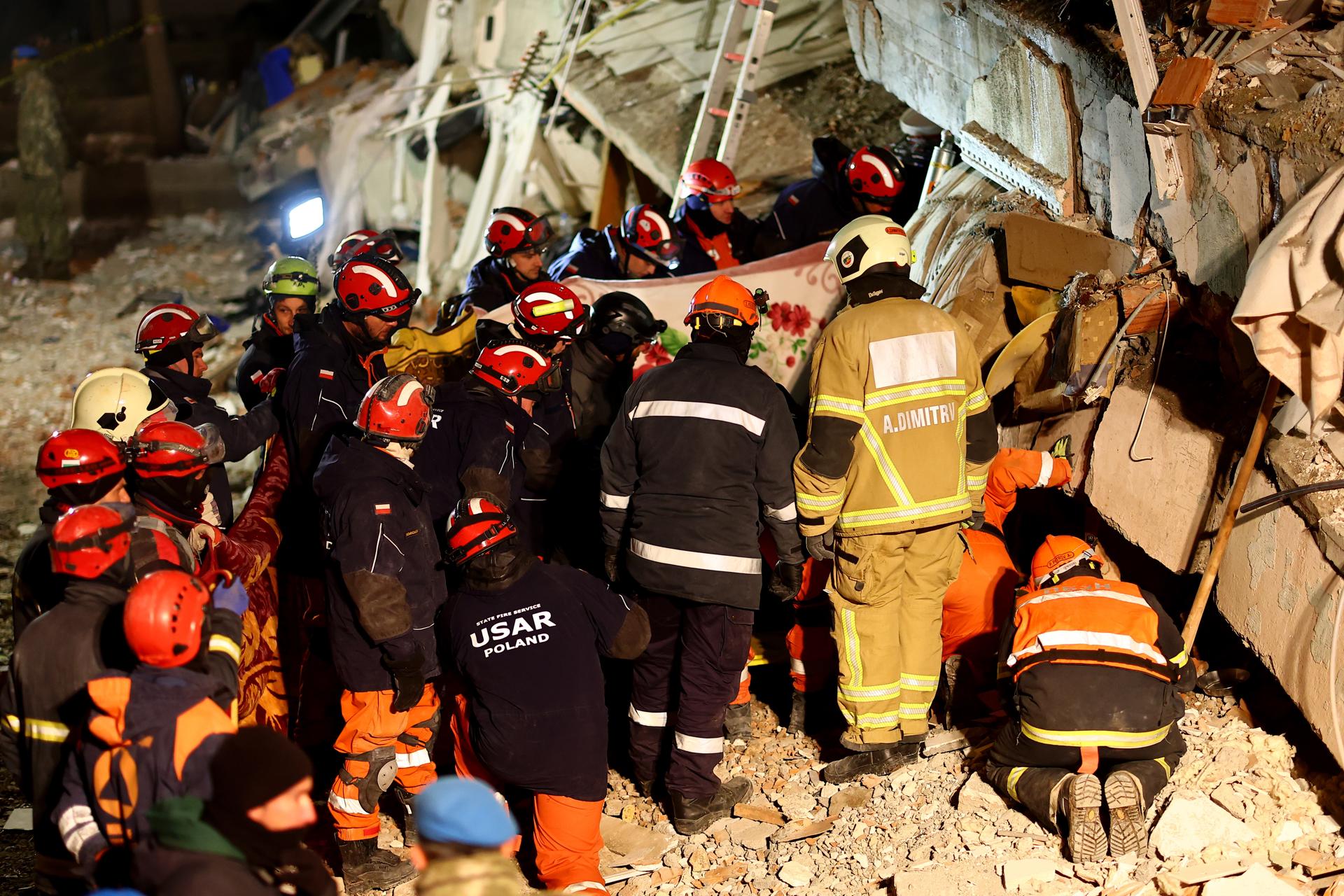 Equipos de rescate polacos y búlgaros transportan a Naile Seker, de 55 años, tras rescatarla de los escombros de un edificio derrumbado este 10 de febrero a 115 horas después de un fuerte terremoto en el distrito de Besni de Adiyaman, al sureste Turquía. | Credit: EFE/EPA/SEDAT SUNA.Personas caminan sobre una casa derrumbada, tras un fuerte terremoto en la aldea de Kullar, cerca del distrito de Elbistan de Kahramanmaras, sureste de Turquía. | Credit: EFE/EPA/SEDAT SUNA.Fatma Kazan, de 35 años, es rescatada de los escombros de una casa derrumbada, 110 horas después de un fuerte terremoto en la aldea de Kullar, cerca del distrito de Elbistan en Kahramanmaras, sureste de Turquía. | Credit: EFE/EPA/SEDAT SUNA.Un soldado turco patrulla este viernes en medio de un campamento erigido en el estadio de la ciudad de Kahramanmaras, Turquía. | Credit: EFE/ABIR SULTAN.Un soldado turco patrulla este viernes en medio de un campamento erigido en el estadio de la ciudad de Kahramanmaras, Turquía. | Credit: EFE/ABIR SULTAN.Personal de emergencia y lugareños buscan víctimas en el lugar de una casa derrumbada, tras un fuerte terremoto en la aldea de Kullar, cerca del distrito de Elbistan en Kahramanmaras, sureste de Turquía. | Credit: EFE/EPA/SEDAT SUNA.Personal de emergencia y lugareños buscan víctimas en el lugar de una casa derrumbada, tras un fuerte terremoto en la aldea de Kullar, cerca del distrito de Elbistan en Kahramanmaras, sureste de Turquía. | Credit: EFE/EPA/SEDAT SUNA.La gente llora a sus familiares en una fosa común tras un gran terremoto en la aldea de Baris, cerca del distrito de Elbistan de Kahramanmaras, sureste de Turquía. | Credit: EFE/EPA/SEDAT SUNA.