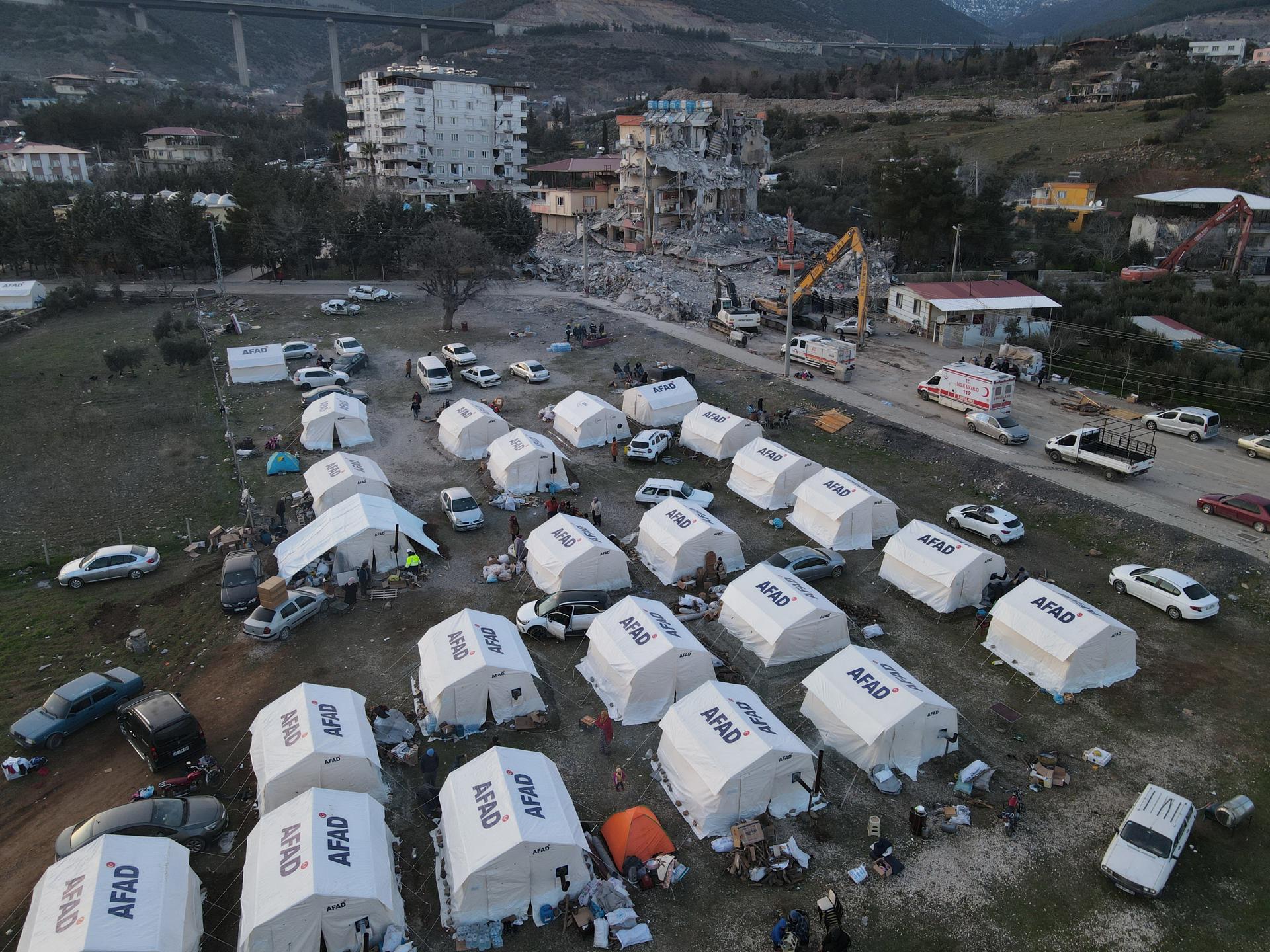 Aunque los grupos de ayuda y el gobierno han distribuido comida caliente en los refugios improvisados, las personas temen un “segundo desastre” de hambre y enfermedades. Credit: EFE/EPA/SEDAT SUNA
