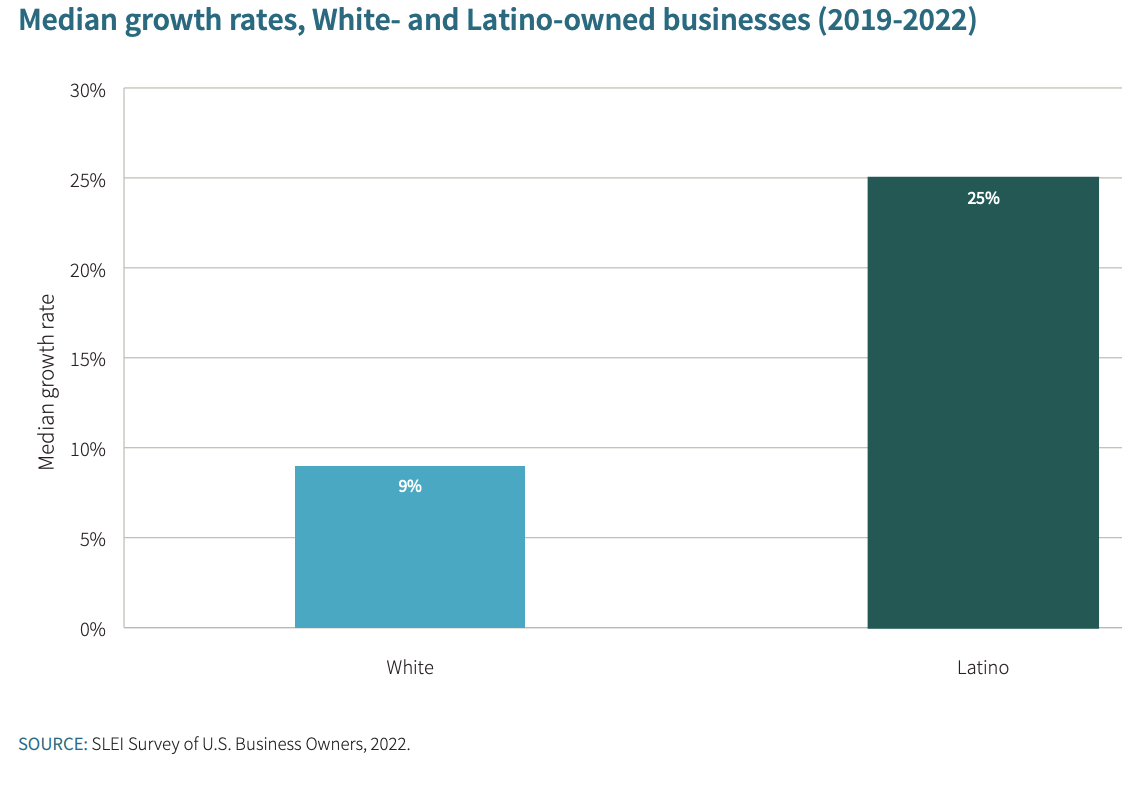 Según el informe, el número de empresas de dueños latinos generadoras de trabajo ha crecido un 34% entre 2007 y 2019, mientras que las empresas generadoras de empleo de propiedad blanca experimentaron un descenso del 7%. Esto significa que el número de empresas de origen latino con al menos un empleado que no sea el propietario creció de alrededor de 257,000 en 2007 a 345,000 en 2019, mientras que el número de empresas de dueños blancos cayó de 4,1 millones a 3,9 millones en el mismo período.